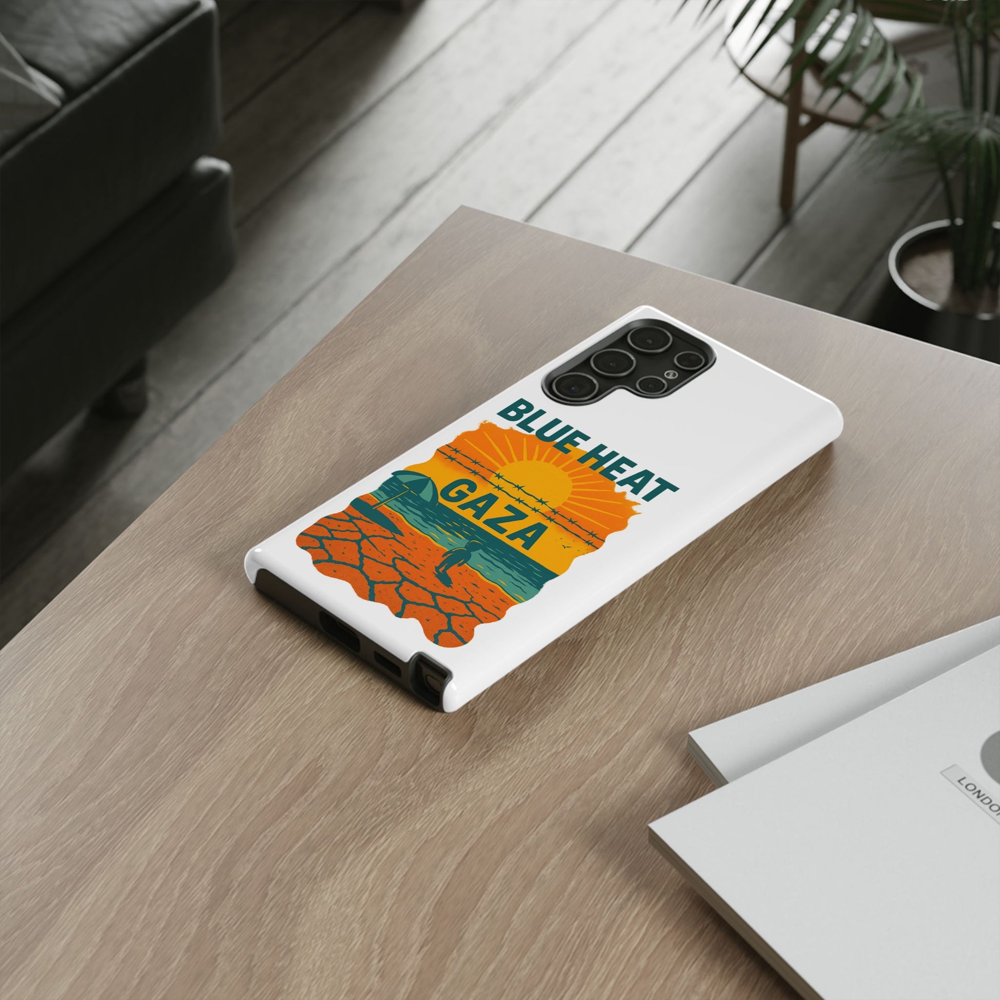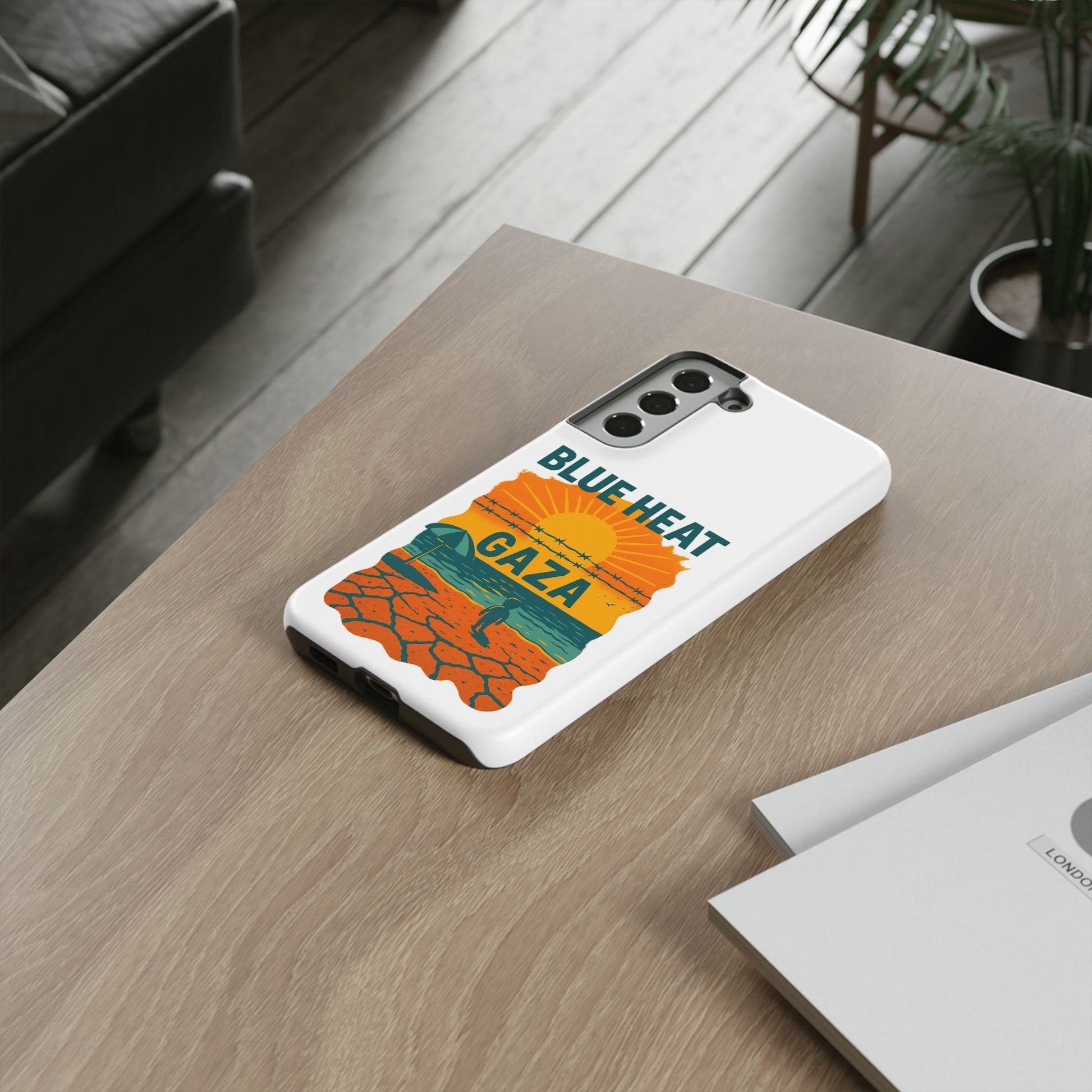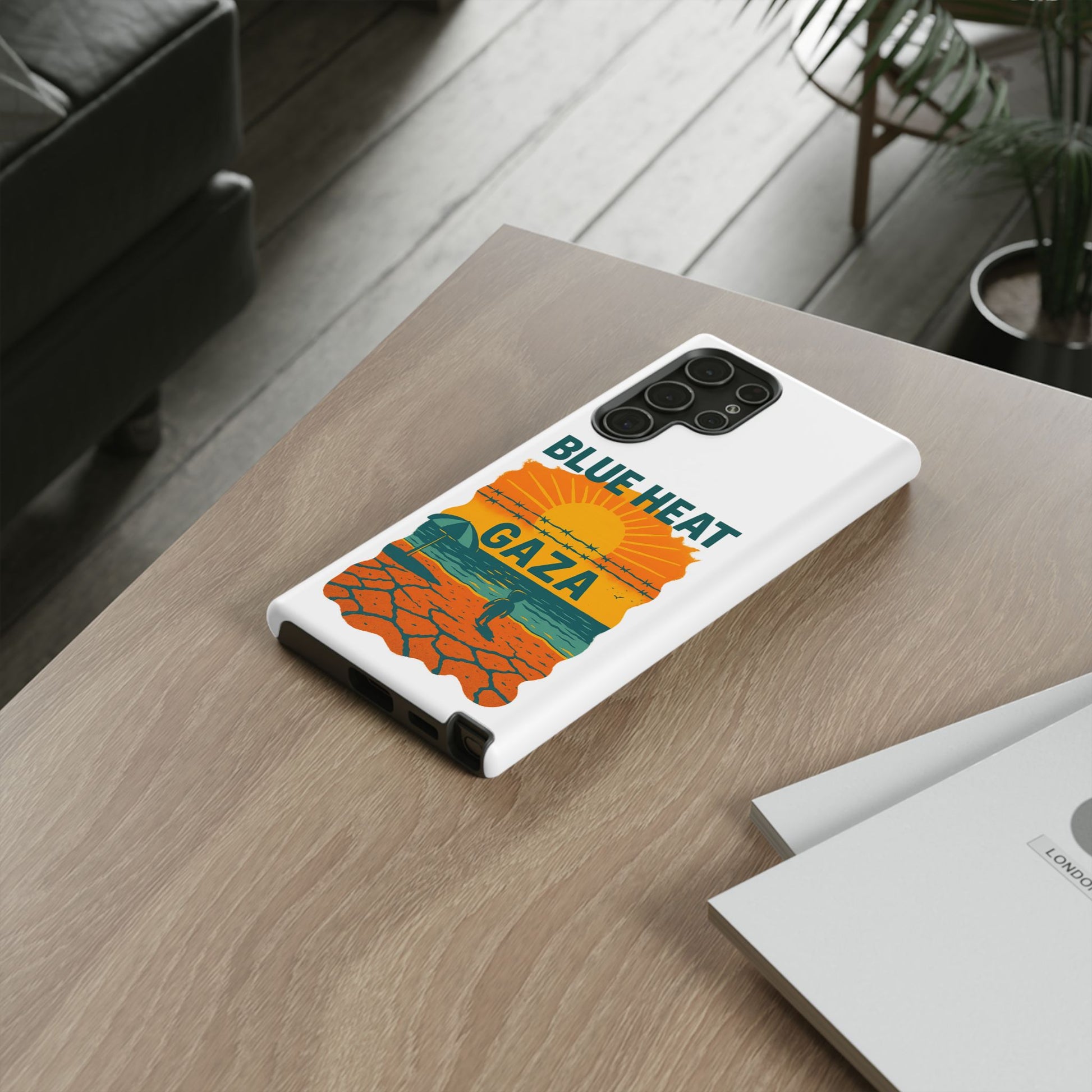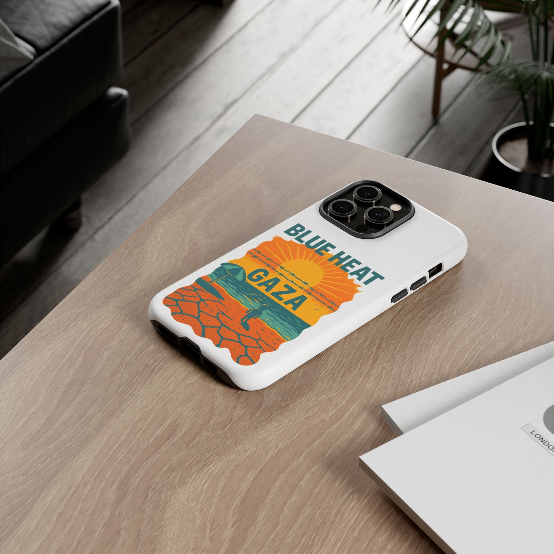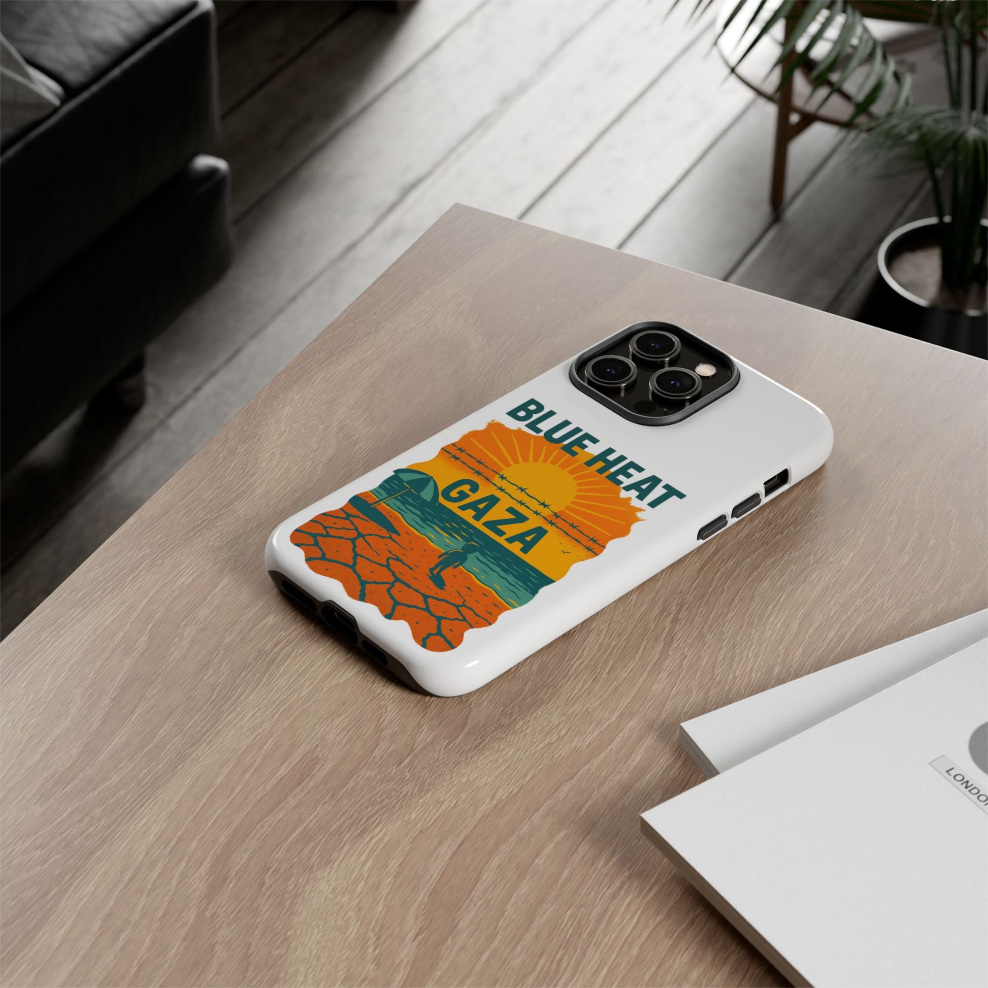 Vivid ocean blues, burning orange, and a lone figure — a slim yet protective case that turns your phone into a statement piece.