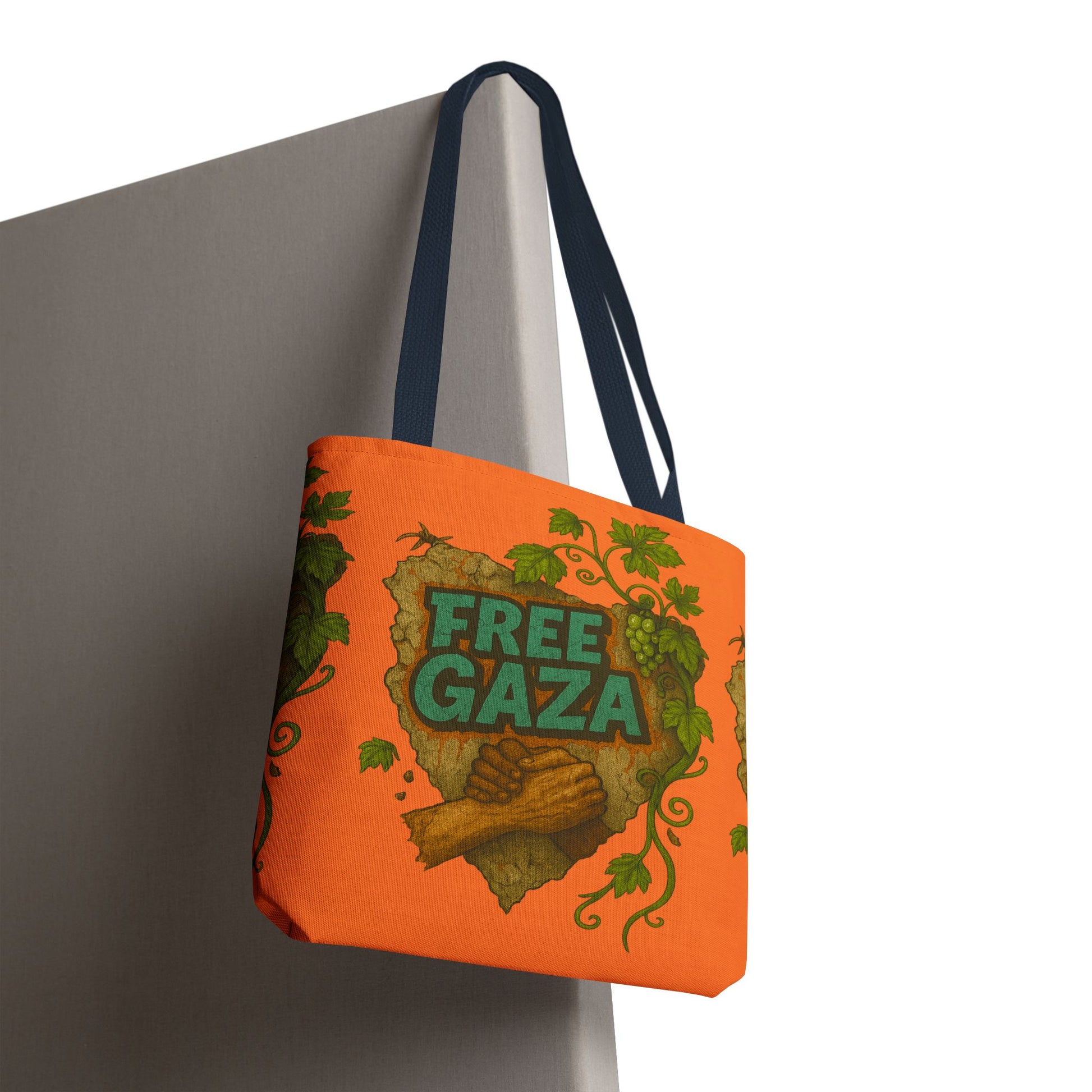 This tote bag features our signature “FREE GAZA” cracked-earth design, surrounded by climbing vines — symbolizing both the roots and the rise of liberation.